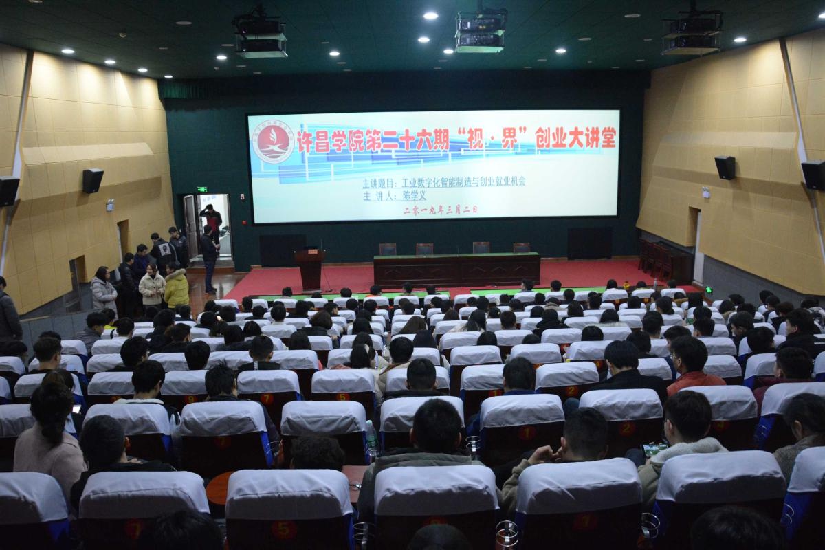 3月2日下午,许昌学院“视·界”大讲堂在创新创业学院二楼双创信息中心开讲。北京洪泰智造工业发展研究院有限公司总经理(院长)陈学义为我校广大学生做了题目为《工业数字化智能制造与创业就业机会》的专题讲座。本次讲座由创新创业学院副院长闫爱敏主持。