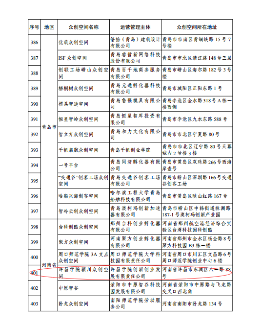 日前,从科学技术部火炬高技术产业发展中心处获悉,我校颍川众创空间成功获批国家级众创空间。