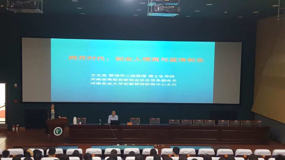5月11日下午,许昌学院“视·界”大讲堂之《跨界时代:创业人情商与蓝海创业》在创新创业学院双创信息中心正式开讲。河南农业大学教授、博士生导师王文亮为我校广大学生做了专题报告。本次讲座由就业指导中心主任曹军芬主持。