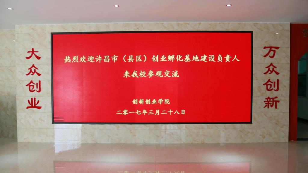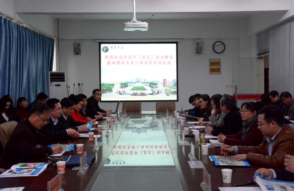 3月28日上午,许昌市人社局副局长吴强带领四县两区人社局及创业孵化园区负责人一行46人我校参观交流。参观完我校颍川众创空间和创新创业中心之后,在创新创业学院一楼会议室召开交流会,会议由创新创业学院院长陈彪主持。