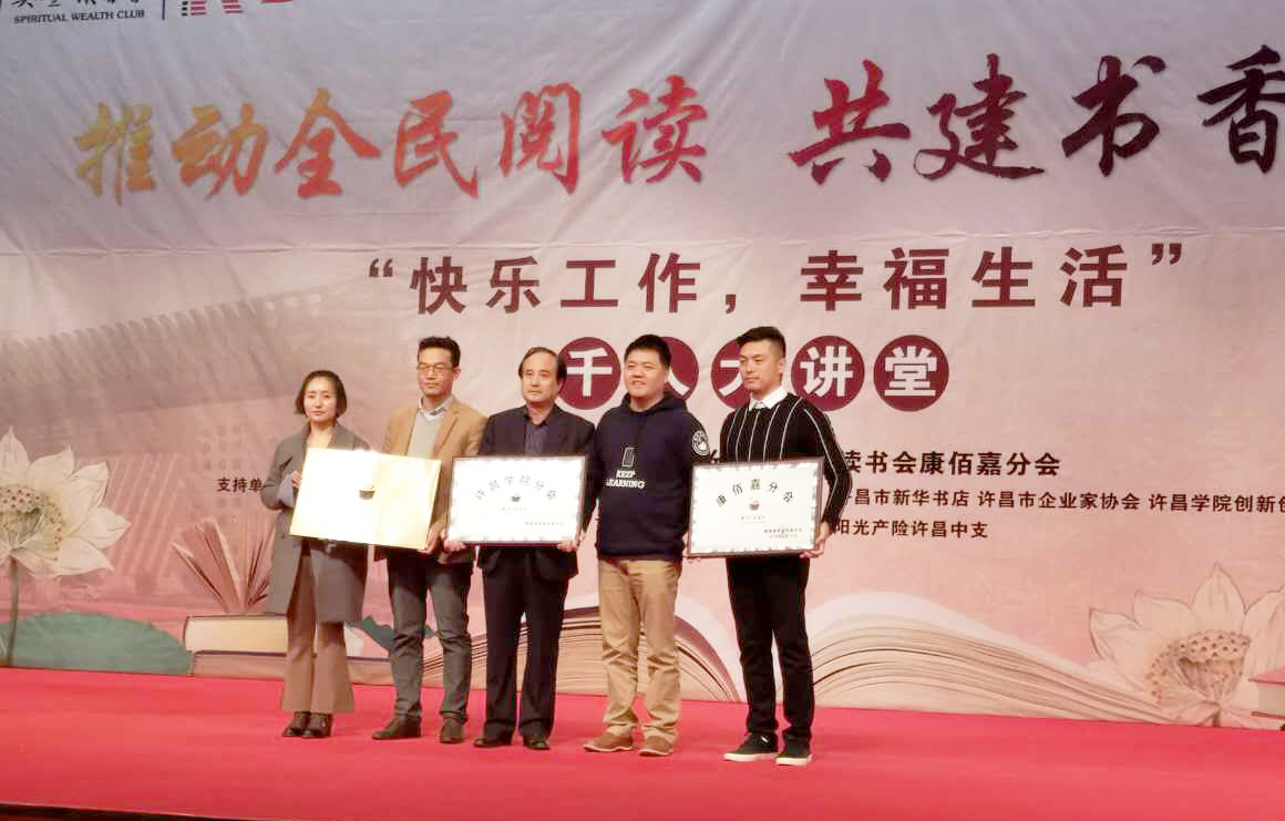 10月28号,“推动全民阅读,共建书香莲城”樊登读书会活动在许都大剧院举行,我院获“樊登读书会许昌学院分会”称号。创新创业学院院长陈彪先生出席会议。