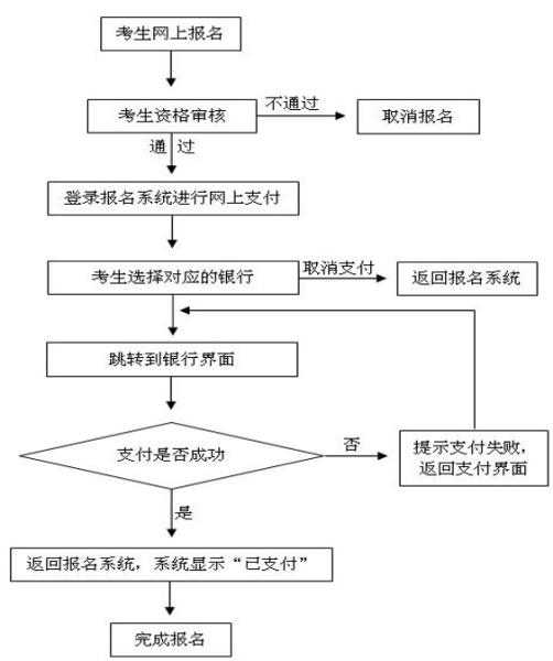 考生从报名网站首页(www.ntce.cn)“在线报名(河南)”入口点击进入报名登录页面→注册取得登录密码(帐号为本人姓名及身份证号)→登录网上报名系统→笔试报名→选择考区→选择类别→选择科目→完成网上填报报名信息→等待网上审核→审核通过考生再次登录网上报名系统在线支付考试费(完成笔试报名确认)→安全退出。