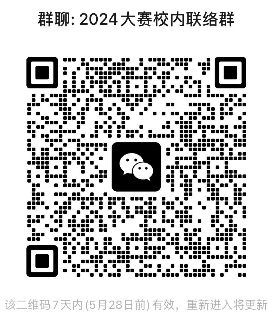 大赛创建工作联络微信群(2024大赛校内联络群),各学院指定一名赛事负责人进群,便于赛事工作沟通交流。