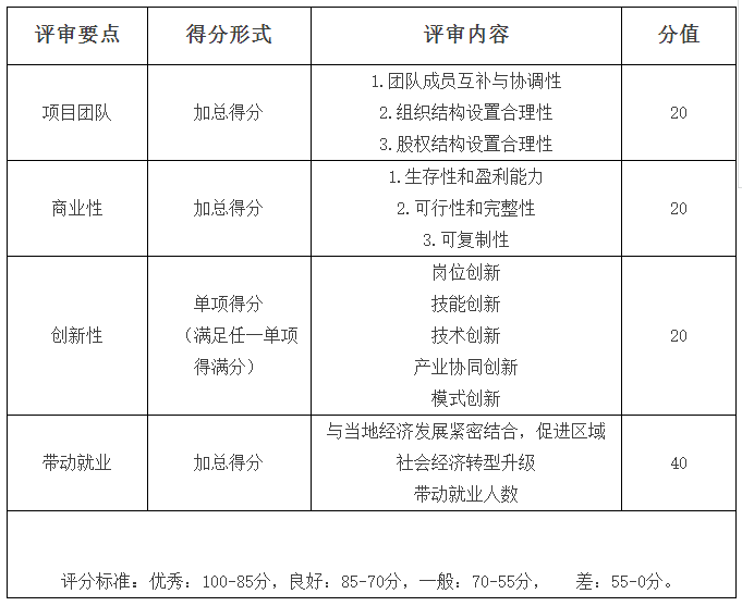 就业型创业组项目评分标准