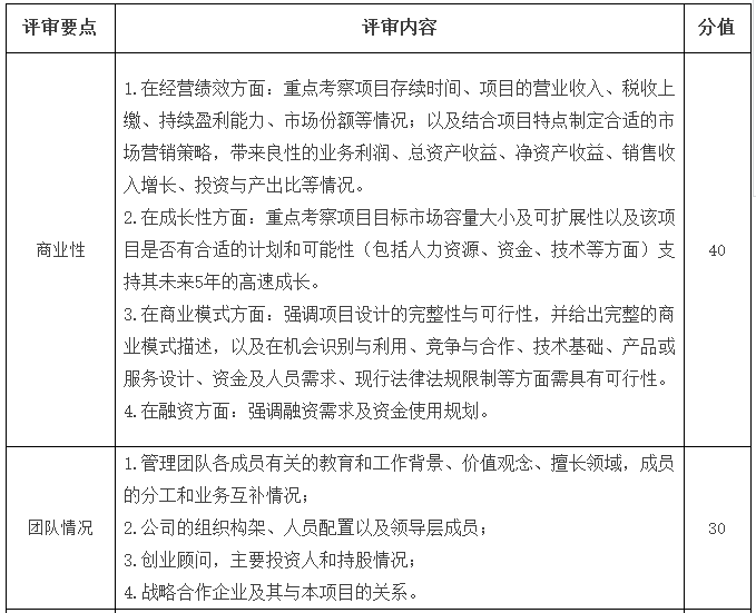 初创组、成长组项目评分标准